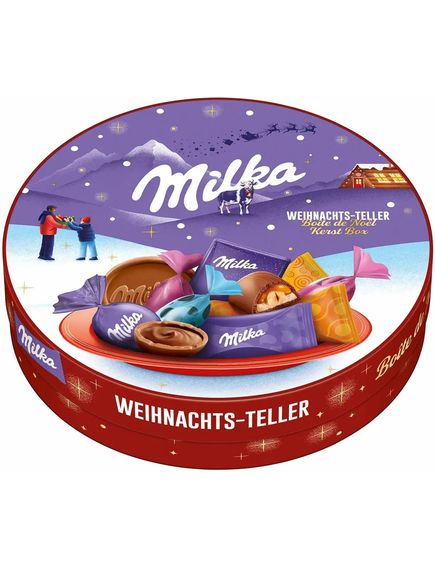 Приємний сюрприз! Різдвяна тарілка Milka неодмінно принесе радість у сезон Різдва. Цей щедрий асортимент містить найсолодші ласощі з поточної різдвяної лінійки Milka. Смачні праліне, шоколадні батончики та кульки пропонують щось для кожного ласунa. Практична коробка також слугує тарілкою, замінюючи традиційну тарілку на Святвечір або роблячи її ідеальною для будь-якої різдвяної зустрічі за кавою.