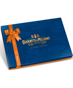 Елегантна блакитна упаковка з помаранчевою стрічкою, яка містить престижну колекцію основних праліне Baratti & Milano: Cremini та Gianduiotto. Ідеально підходить для особливого подарунка, ця упаковка пропонує низку вишуканих смаків, вираження найкращих італійських кондитерських традицій....