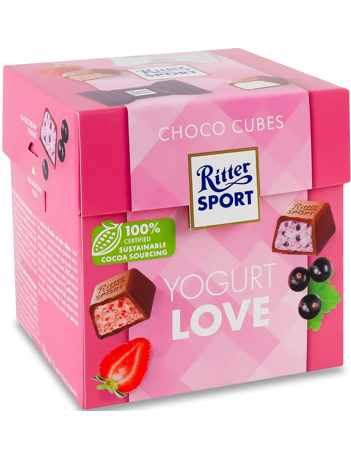 З кубиками шоколаду Ritter Sport ви будете в центрі уваги на кожній вечірці, якщо ви стоїте досить близько до упаковки. Тому що три твори з фруктово-освіжаючими йогуртовими кремовими начинками в хрусткому незбираному молочному шоколаді у варіантах полуничний йогурт, йогурт і йогурт з лісових ягід є справжнім магнітом для всіх любителів шоколаду. У стильній упаковці міні-цукерки можна не тільки апетитно піднести, але й як подарунок.