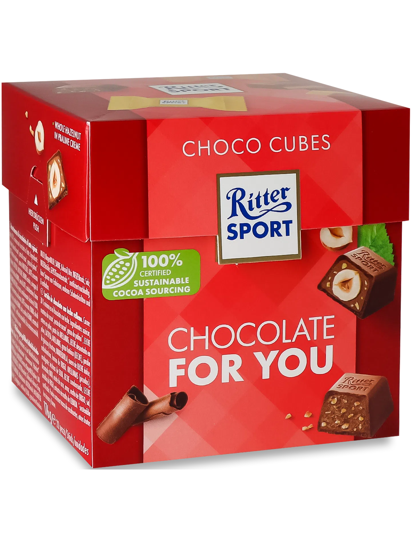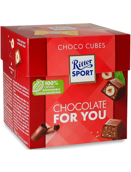Наймиліші у світі привітання. Шоколадне привітання Ritter Sport з шоколадними кубиками - бажаний подарунок скрізь. Для кубиків шоколаду Ritter-Sport було створено чотири найкращі різновиди шоколаду: тонка нуга, карамель, горіх у кремі з нуги та шоколадний хрусткий шоколад. Найкращі інгредієнти з усього світу, ідеально підібраний незбираний молочний шоколад з високим вмістом какао та великою кількістю вершкової начинки роблять шоколадні кубики Ritter-Sport особливою насолодою. Стильна упаковка робить 22 кубики шоколаду ідеальним подарунком. Чи то для друзів і родини, чи просто для себе.