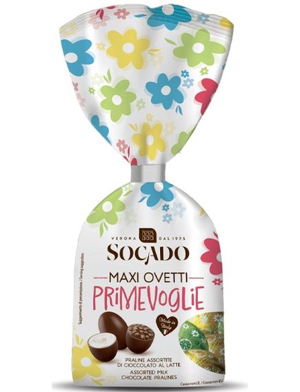 Socado "Максі Великодні Яйця Перші Примхи" – це набір італійських шоколадних цукерок у формі великодніх яєць з асорті-начинками. Назва "Primevoglie" (з італійської – "Перші Примхи") натякає на витончене задоволення від першого шматочка шоколаду.