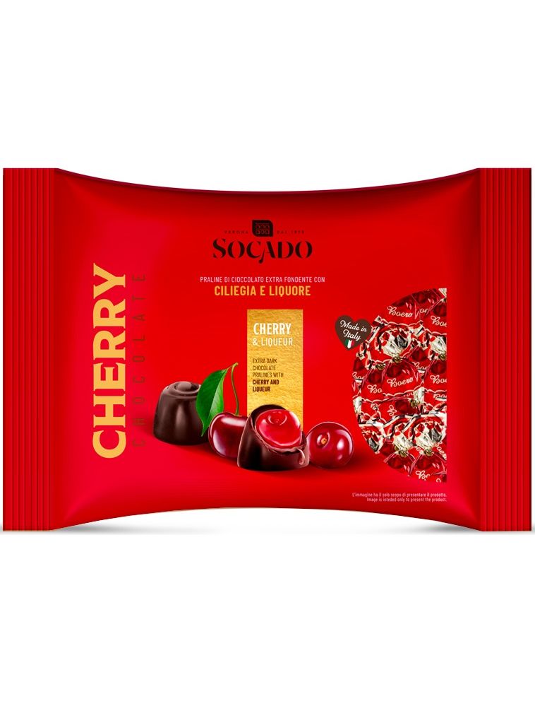 Хрумка скринька з екстра темного шоколаду, в якій укладена соковита вишня без кісточок, занурена в лікер, що обволікає.