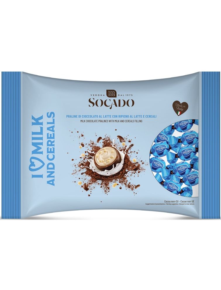 Праліне з молочного шоколаду з чудовою молочно-вершковою начинкою, збагаченою хрусткими пластівцями.