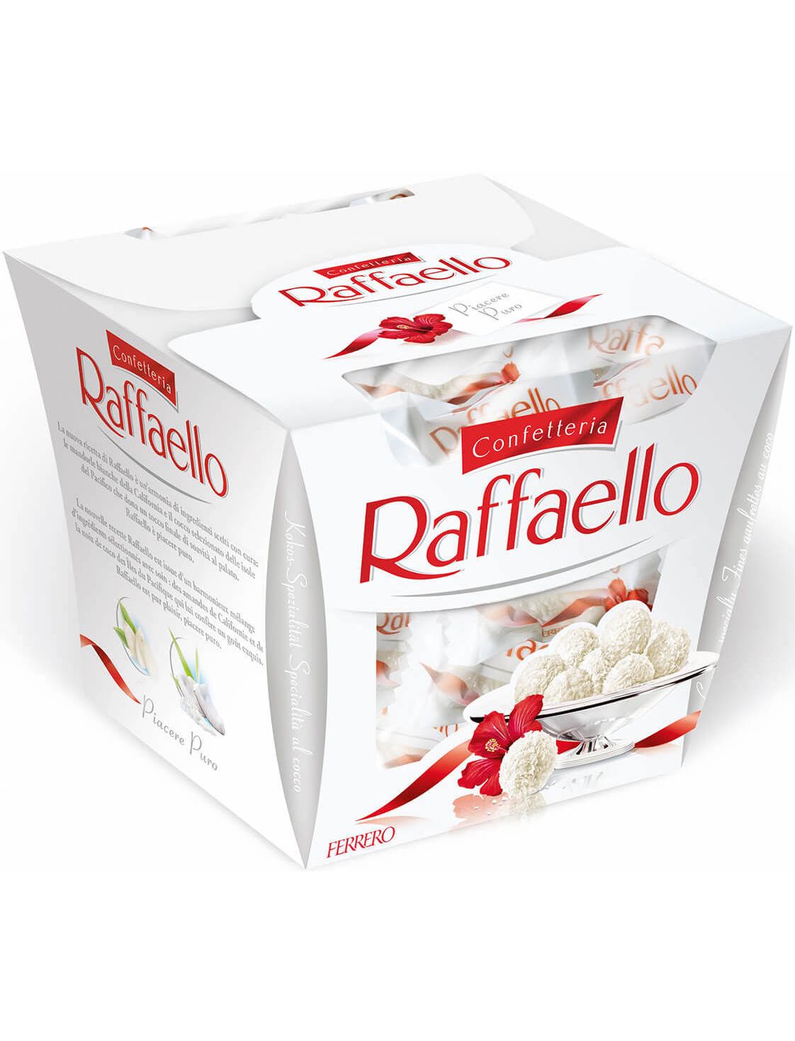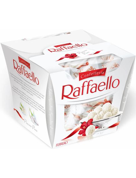 Raffaello - це хрустка цукерка, вкрита кокосовою стружкою, із ніжним кремом та цілим мигдальним горіхом всередині. Чудовий подарунок, який допоможе проявити найніжніші почуття до коханої людини.
