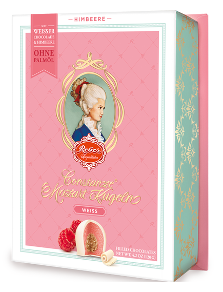 Дуже тонка горіхова нуга, покрита фруктовим малиновим марципаном і відтінком білого шоколаду.