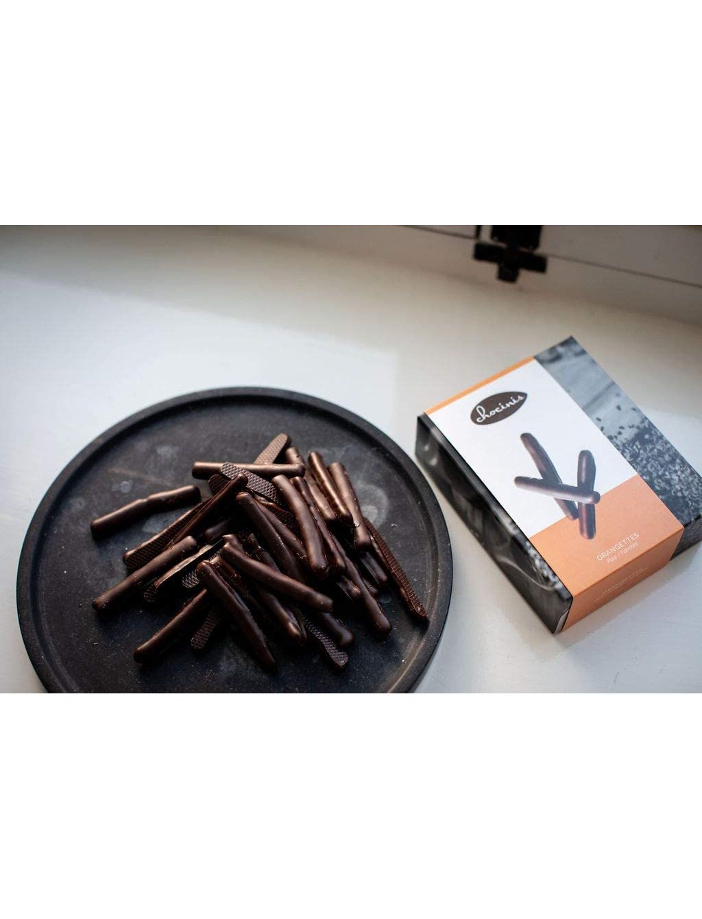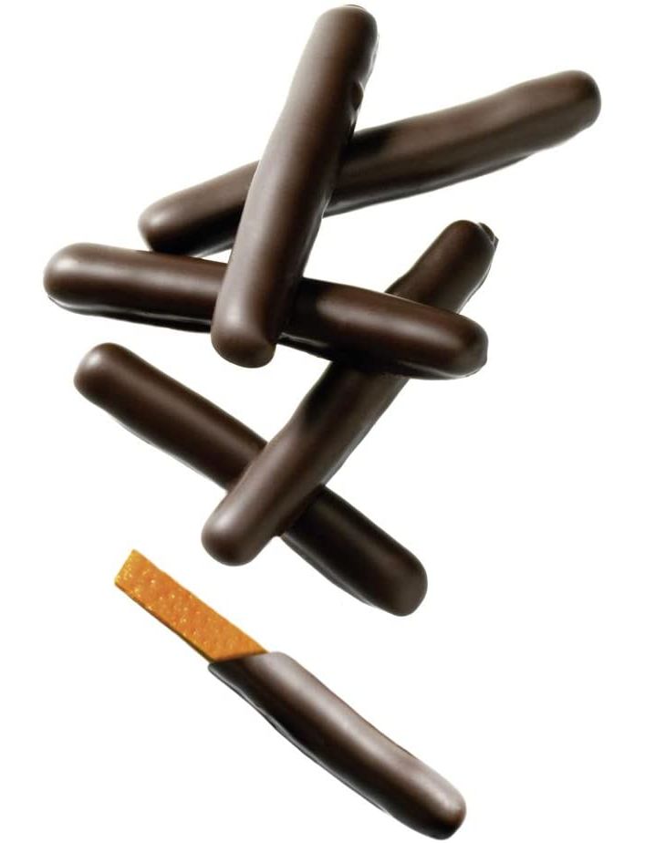 Склад: цукор, шкірки апельсину, паста какао, сироп глюкози, какао-масло, декстроза, мальтоза, емульгатор (соєвий лецитин), регулятор кислотності (лимонна кислота), натуральний консервант (сорбат калію).