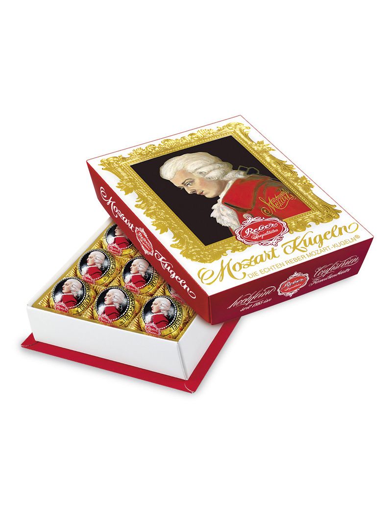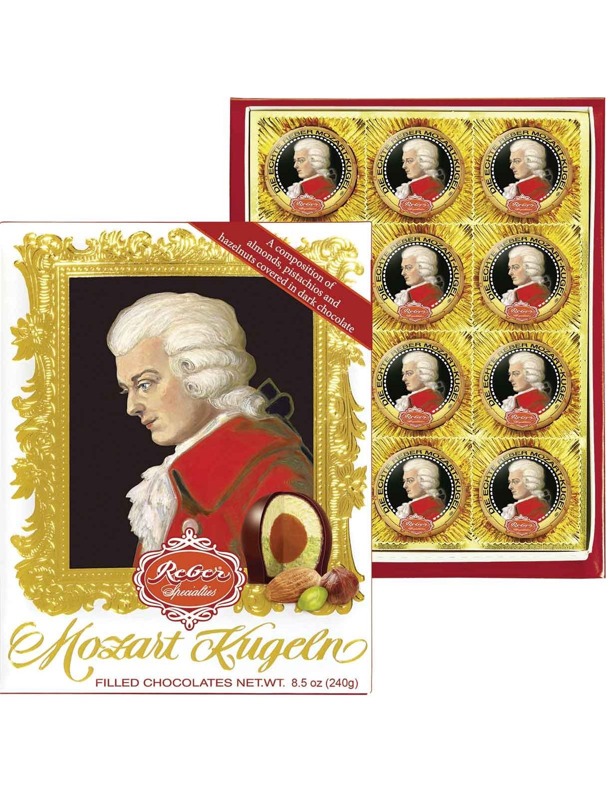 Класика. Наповнений фісташковим марципаном зі свіжих зелених фісташок, мигдалю та фундукової нуги, покритий вишуканим шоколадним праліне: це справжні кульки Reber Mozart. Так звана барокова упаковка має високоякісний дизайн із гарячим тисненням золотою фольгою і є ідеальним подарунком для особливих випадків.