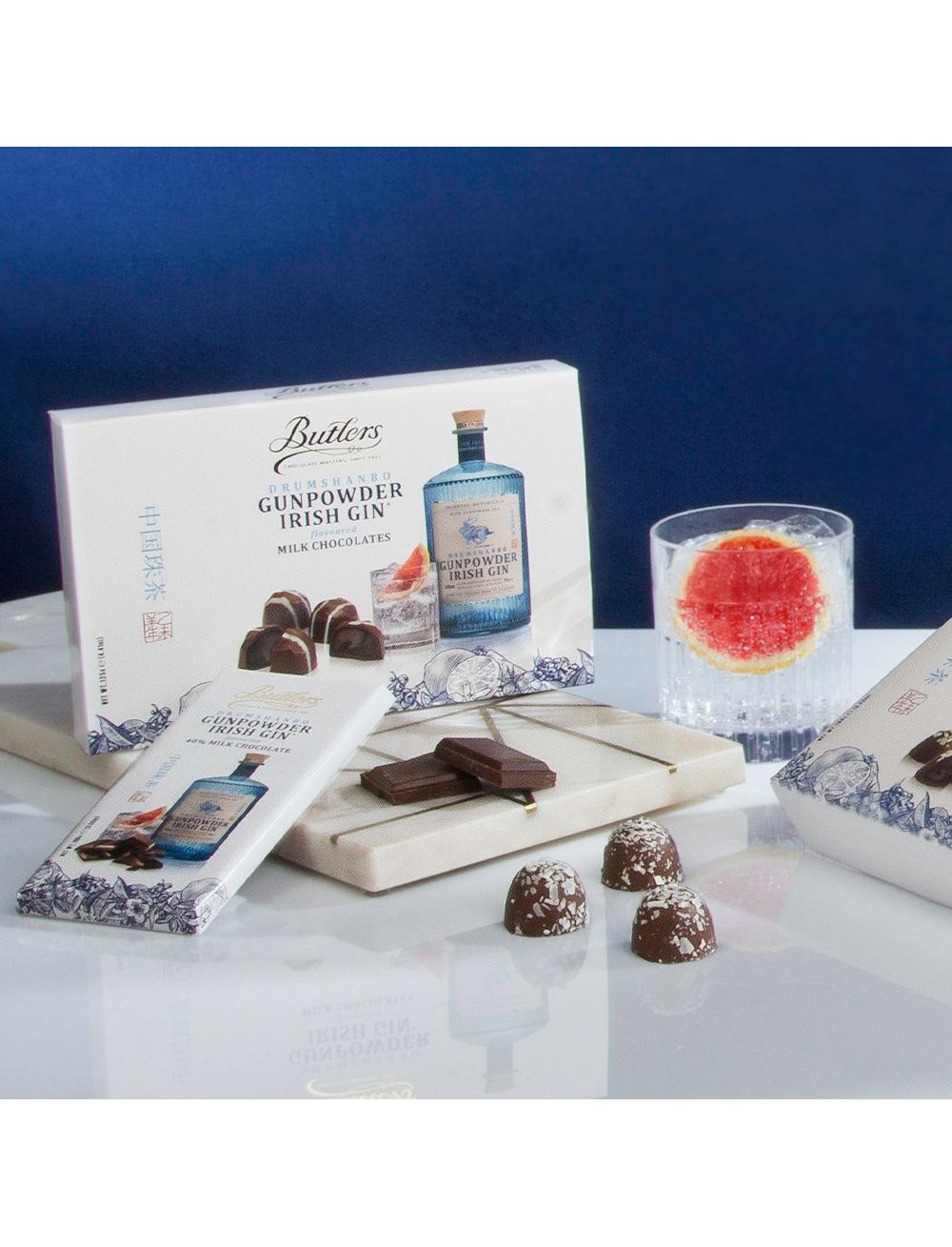 Butlers, заснована в 1932 році, є провідною сімейною компанією Ірландії, яка спеціалізується на виробництві виняткового шоколаду. Drumshanbo Gunpowder Irish Gin® повільно переганяється вручну в середньовічних мідних кубах зі східним ботанічним чаєм і чаєм з порохом. Поєднання шоколадних цукерок Butlers з ірландським джином Drumshanbo Gunpowder® створює незабутні враження від смаку, які ви можете відкрити та насолодитися.