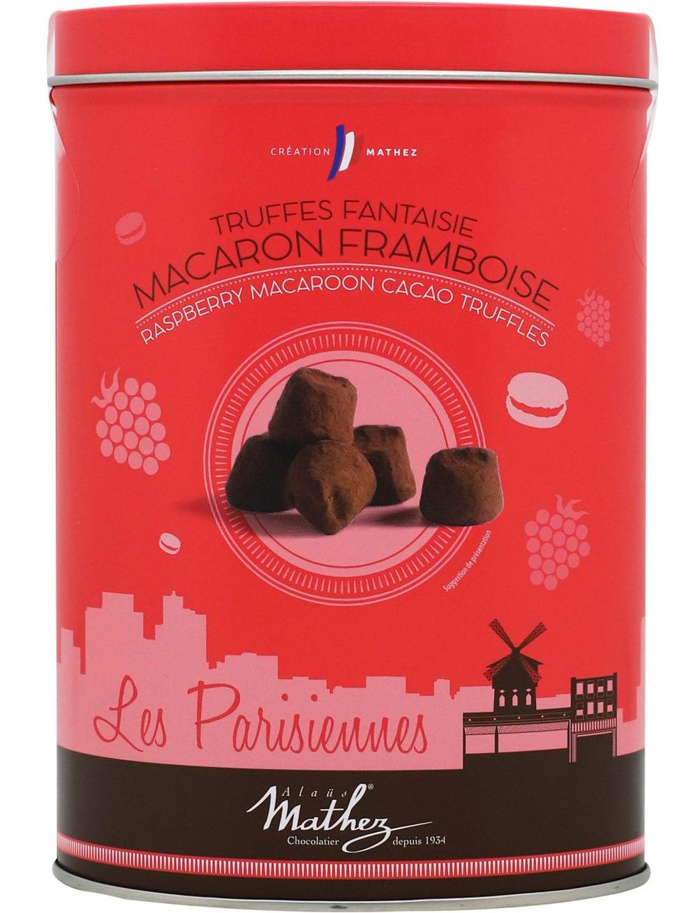 Трюфель з малиною — один із найфруктовіших смаків колекції Chocolat Mathez. У кожній цукерці поєднується м'який какао-трюфель із сублімованими шматочками малини. Цукерки приготовані за старовинним рецептом кондитерського будинку Mathez. Аромат нагадує союз солодкого малинового пирога та чорного шоколаду.