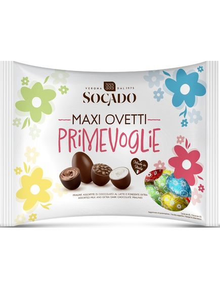 Socado "Максі Великодні Яйця Перші Примхи" – це набір італійських шоколадних цукерок у формі великодніх яєць з асорті-начинками. Назва "Primevoglie" (з італійської – "Перші Примхи") натякає на витончене задоволення від першого шматочка шоколаду.