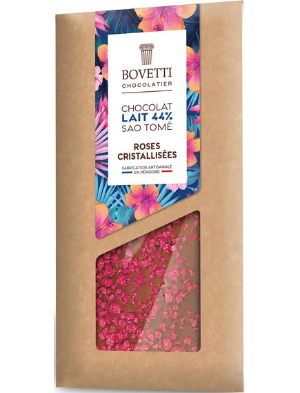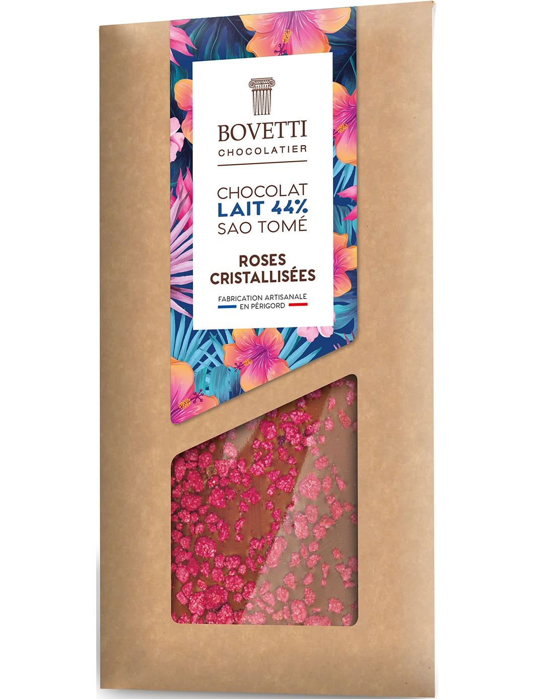 Склад: молочний шоколад (цукор, какао-масло, цільне сухе МОЛОКО, какао терте, натуральний ароматизатор ваніль), троянда 6% (цукор, натуральні квіти троянд, глазуруватель (гуміарабік, барвник (кармін, ароматизатор).