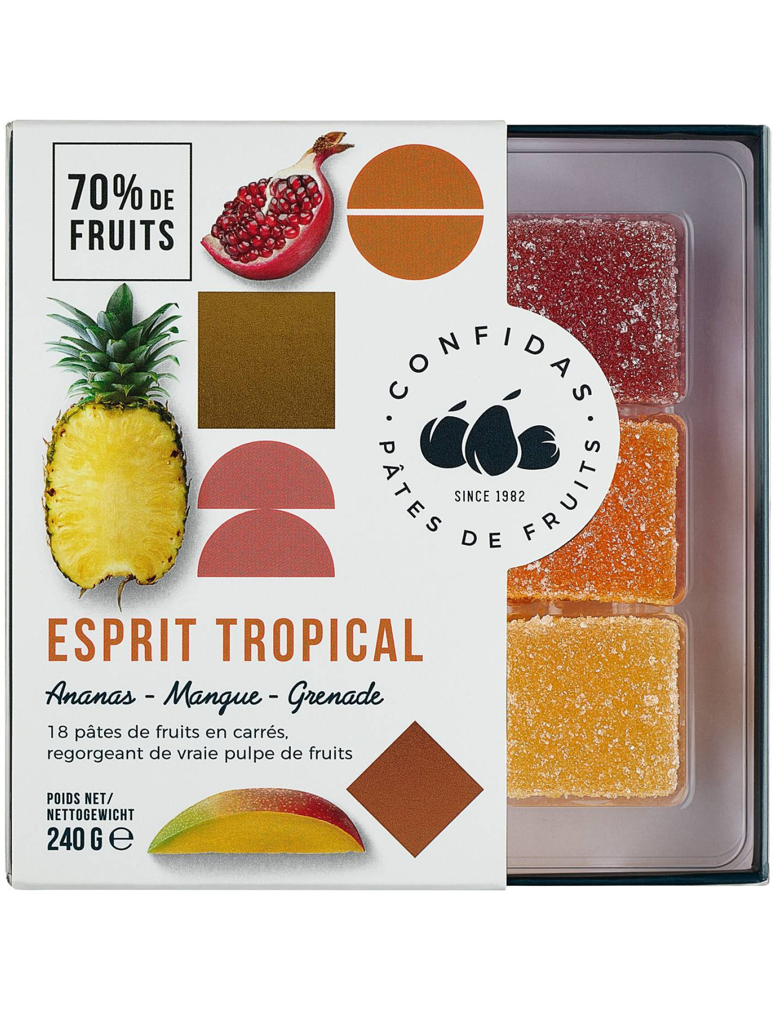 Склад: м'якоть фруктів (яблуко, ананас, манго, гранат), цукор, глюкоза, зв'язуючий елемент: пектин, підкислювач: лимонна кислота, натуральні ароматизатори.