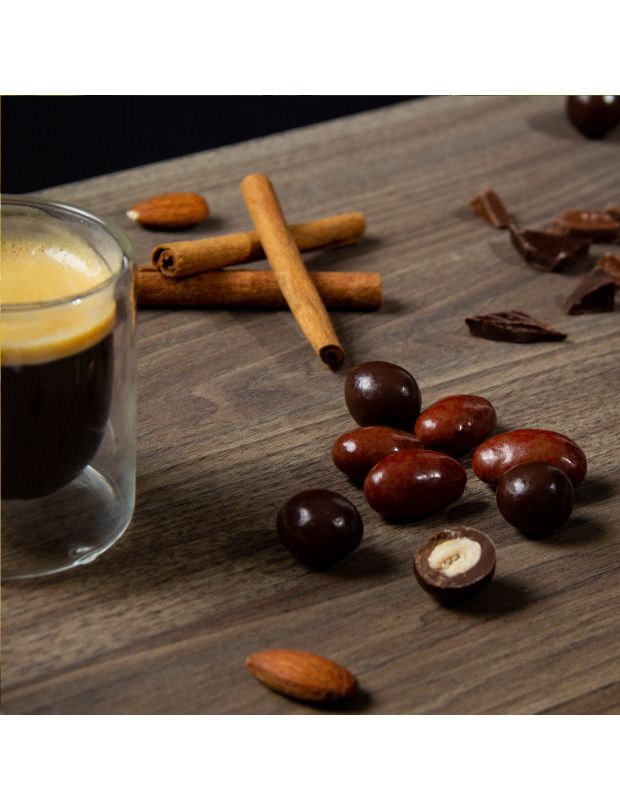 Мигдаль у темному шоколаді: Насичений смак темного шоколаду підкреслює природну солодкість горіха.