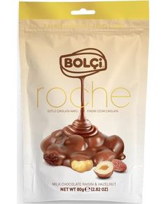 Молочний шоколад (75%) (цукор, какао-масло, сухе незбиране молоко (19%), какао терте, молоко сухе знежирене (5%), емульгатор (соняшниковий лецитин (Е322) (0,05%)), натуральний ароматизатор (ваніль), фундук (12,5%), родзинки (12,5%)). Інформація для алергіків: містить молоко та фундук; може...