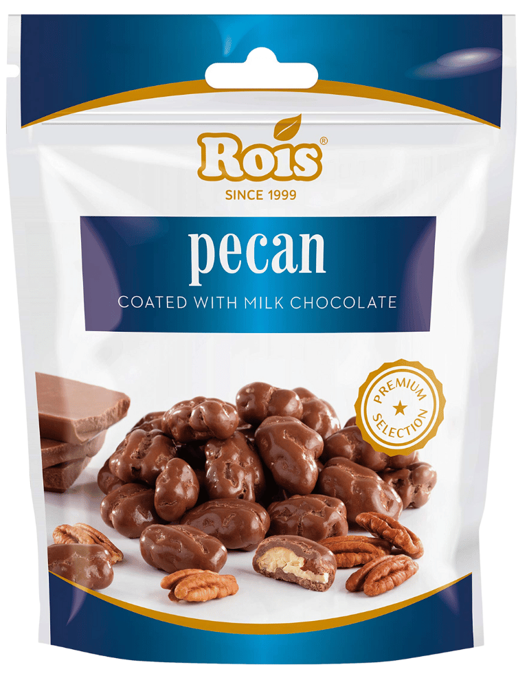 Склад: кувертюр з молочного шоколаду (цукор, какао-масло, сухе незбиране молоко, какао-порошок знежирений, емульгатори: соєвий лецитин, Е476; ароматизатор: ваніль), пекан , цукор, глазурувальник: шелак; гліцерин, сироп декстрози, крохмаль пшеничний, камедь акації, олія рослинна. Продукт може містити сліди інших горіхів та арахісу.