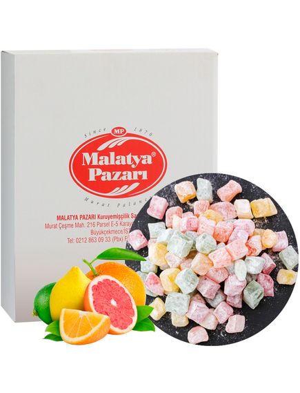 Склад: цукор, кукурудзяний крохмаль, кукурудзяний сироп, екстракти (м'яти, лимона, апельсина, троянди, полуниці) регулятор кислотності (лимонна кислота), харчовий барвник (Е124, Е102, Е110, Е132, Е14, Е160с, Е100, Е120). Компанія Malatya Pazari з'явилася на ринку ще 1870 р., і ще наприкінці...