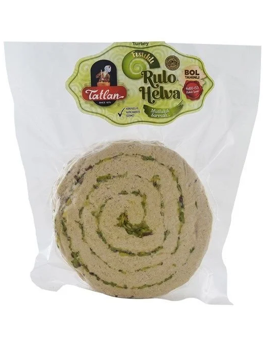 Наша халва, виготовлена на 100% натурального кунжуту та 100% натурального тахіні, є водночас смачною та смачною та значною мірою сприяє вашому здоров’ю. Халва Tatlan Antep Roll виготовлена з натурального кунжуту та тахіні та зміцнює захисні сили організму та підвищує імунітет проти вірусів та бактерій. Задовольніть свою тягу до солодкого корисним і смачним способом з фісташковим рулетом Tatlan 350 гр. Фісташкова халва Татлан стане невід'ємною частиною ваших столів. Відкрийте для себе натуральний і корисний смак фісташкової халви. Фісташкова халва Tatlan пропонує вам неповторний смак у кожному шматочку.