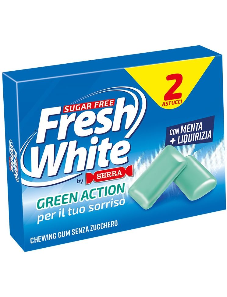 Завдяки свіжому смаку та додаванню ксиліту Fresh White Green Action — це жувальні гумки без цукру, які подарують вам задоволення та посмішку. Ідеальне доповнення до щоденної гігієни порожнини рота.