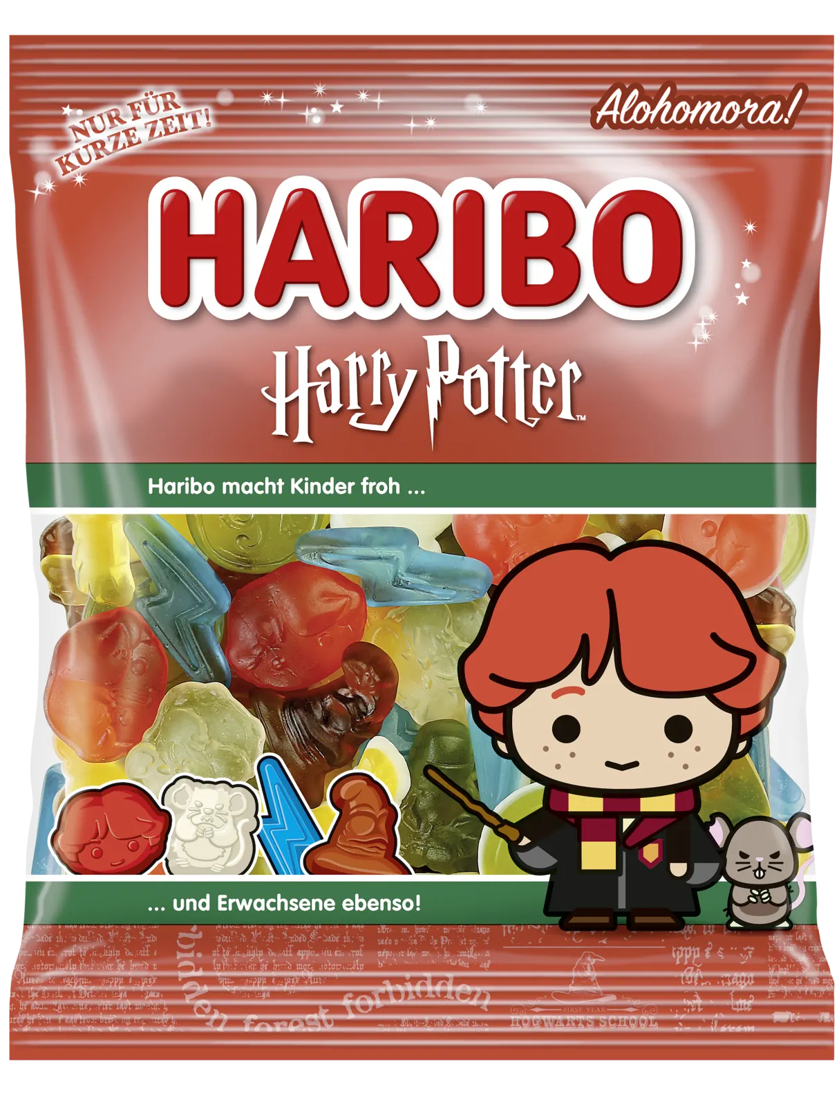 Солодка розвага, натхненна Роном Візлі! Haribo Гаррі Поттер Рон Візлі радує поєднанням фруктової гумки та цукрової піни, сформованих у чарівні фігурки. На упаковці зображений симпатичний Рон Візлі, який привносить частинку чарівництва Хогвартсу в кожну перерву. Ідеально підходить для всіх, хто любить Гаррі Поттера і хоче насолоджуватися своїми закусками з відтінком магії!