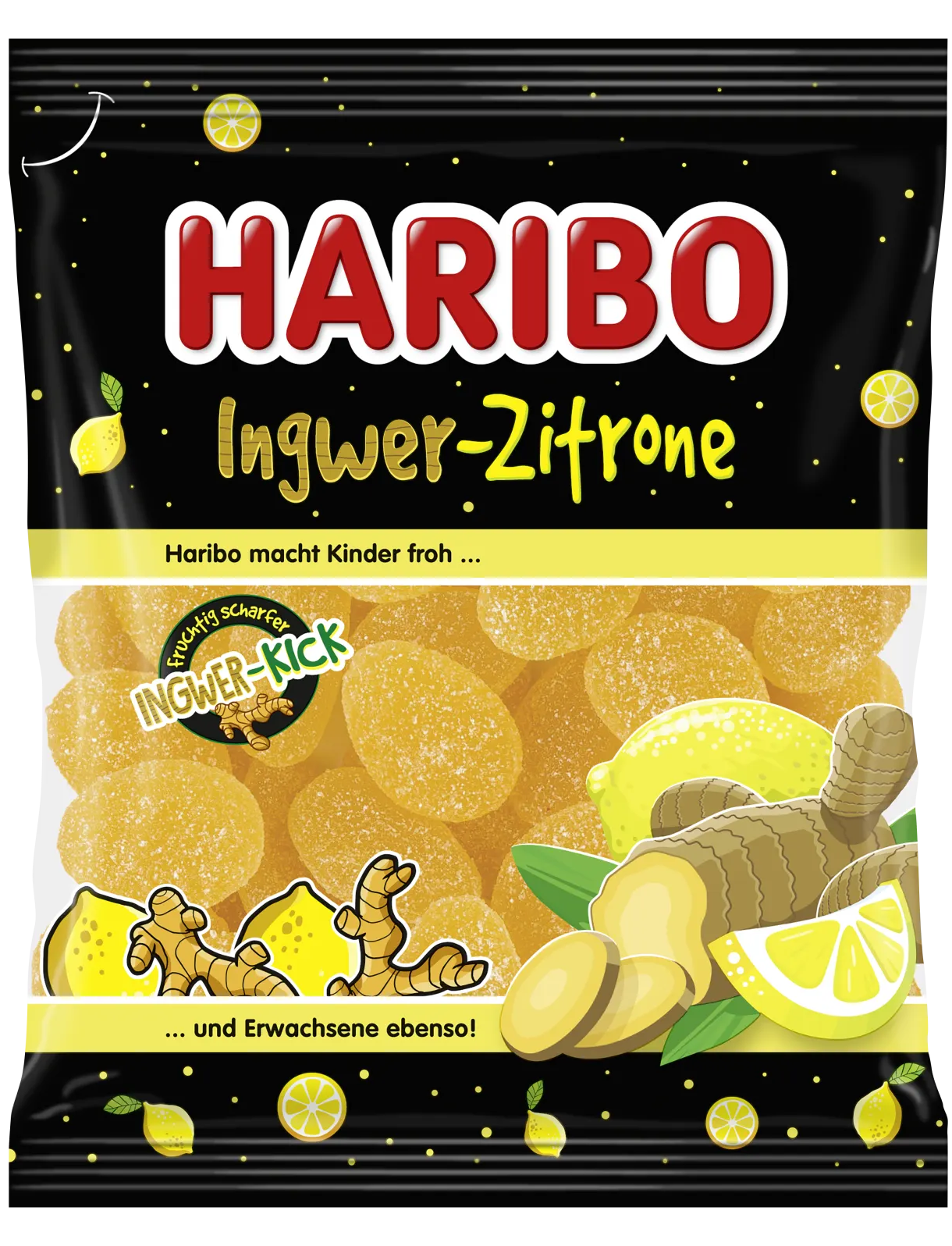 Освіжаюче гострий. Haribo lemon — це зацукровані шматочки гумки в привабливому поєднанні пряного імбиру та кислого лимона. Приємно підбадьорлива пікантна нотка досягається завдяки додаванню концентрату справжнього імбиру. Таким чином, імбирно-лимонний напій є ідеальним компаньйоном як «невелике підкріплення» в дорозі та між прийомами їжі.