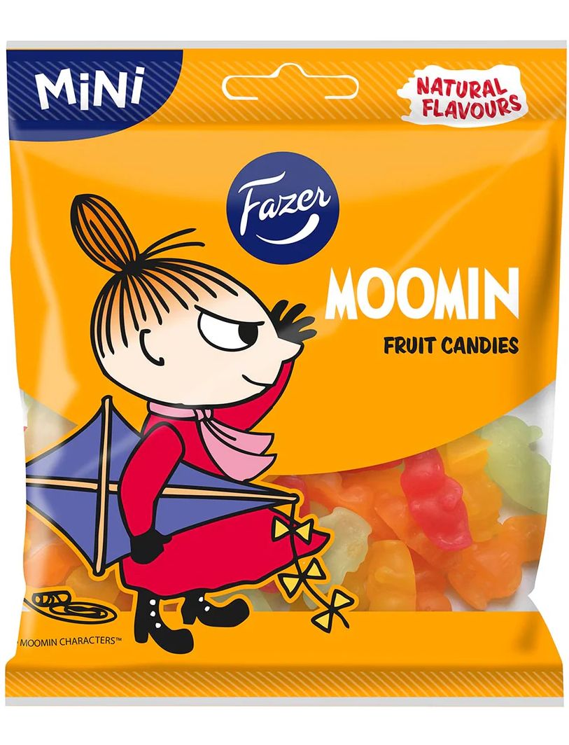 Суміш чотирьох фруктових смаків цукерок у формі Мумі-тролів, ніжних, як обійми від Мумі-мами. Пакетики прикрашені улюбленими персонажами: Мумі-тролем та Маленьким Мі. Цукерки Мумі-тролі не містять лактози та підходять для веганів. Цей маленький пакетик цукерок – ідеальний вибір для частування або подорожі.
