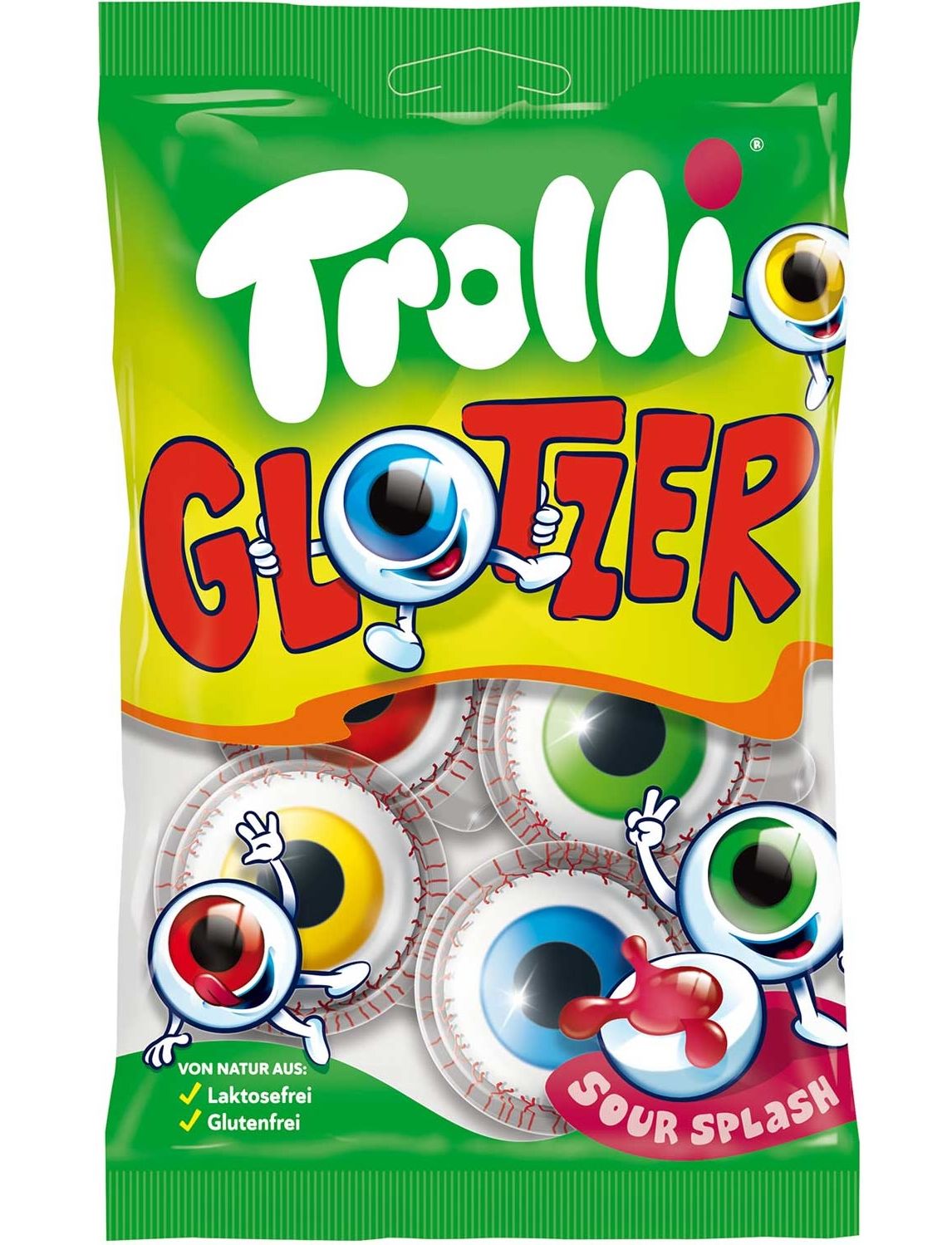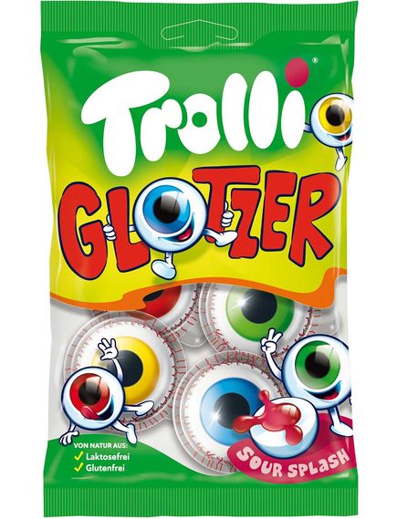 Страшенно смачно. Trolli Glotzer з кислинкою справді шокують як візуально, так і за смаком. Своїми великими зіницями вони ніби дивляться на вас. Якщо у вас достатньо сміливості, щоб вкусити одне з оманливо справжніх фруктових очей, виготовлених із піни цукрової гумки, ви можете очікувати надзвичайно кислої рідкої начинки. Індивідуально упаковані витріщені очі викликають приємні тремтіння не тільки у дітей. До речі, діаметр приблизно 35 мм.