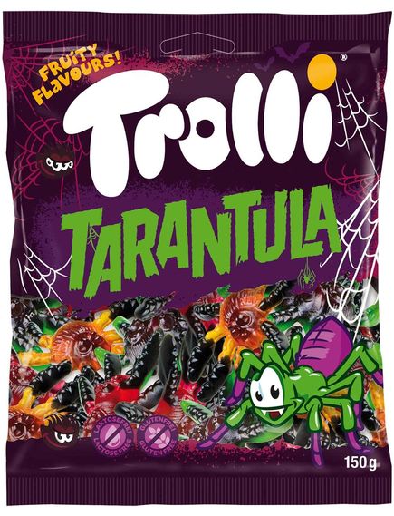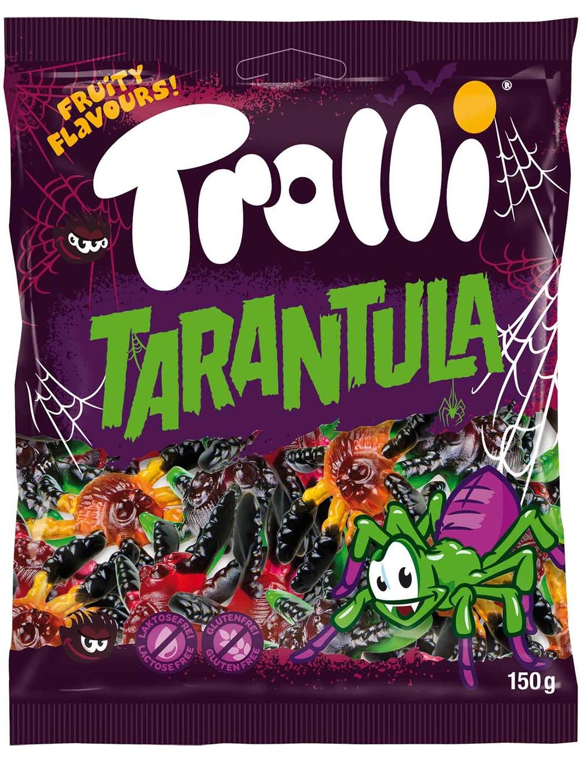 Завдяки фруктовому смаку та великому блискучому тілу Trolli Tarantula полює на любителів Trolli. Якщо ви потрапите в мережу цих павуків, неймовірне задоволення вам гарантовано. Приголомшливо смачні восьминогі істоти розміром приблизно 6 х 6 см вражають своїм деталізованим виглядом - і не в останню чергу своїм фруктовим смаком малини, ожини, яблука, полуниці та апельсина.