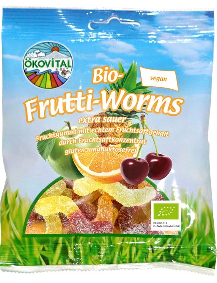 Склад: тростинний цукор*, сироп глюкози*, кукурудзяний крохмаль*, підкислювач (лимонна кислота, яблучна кислота, молочна кислота), концентрат фруктового соку* (1,68%): вишня* (0,56%), ананас* (0, 56%), яблуко* (0,28 .0,28%), апельсин* (XNUMX%); Регулятор кислотності (кальцію цитрат, натрію цитрат), фруктові та овочеві барвники: (гарбуз*, яблуко*, морква*, бузина*, водорості, сафлор), крохмаль (пектин), натуральний ароматизатор. *Органічний інгредієнт.