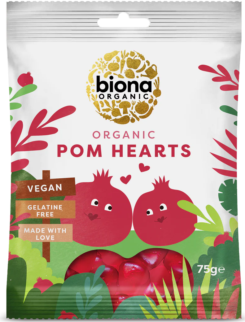 Склад: сироп глюкози*, необроблений тростинний цукор*, желюючий агент (пектин), концентрат гранатового соку* (0,9%), регулятори кислотності (тартрат калію, тартрат натрію), кислота (лимонна кислота), натуральний гранатовий ароматизатор, барвник, концентрат чорного морквяного соку* , глазурувальник (карнаубський віск*). *=Сертифіковані органічні інгредієнти.
