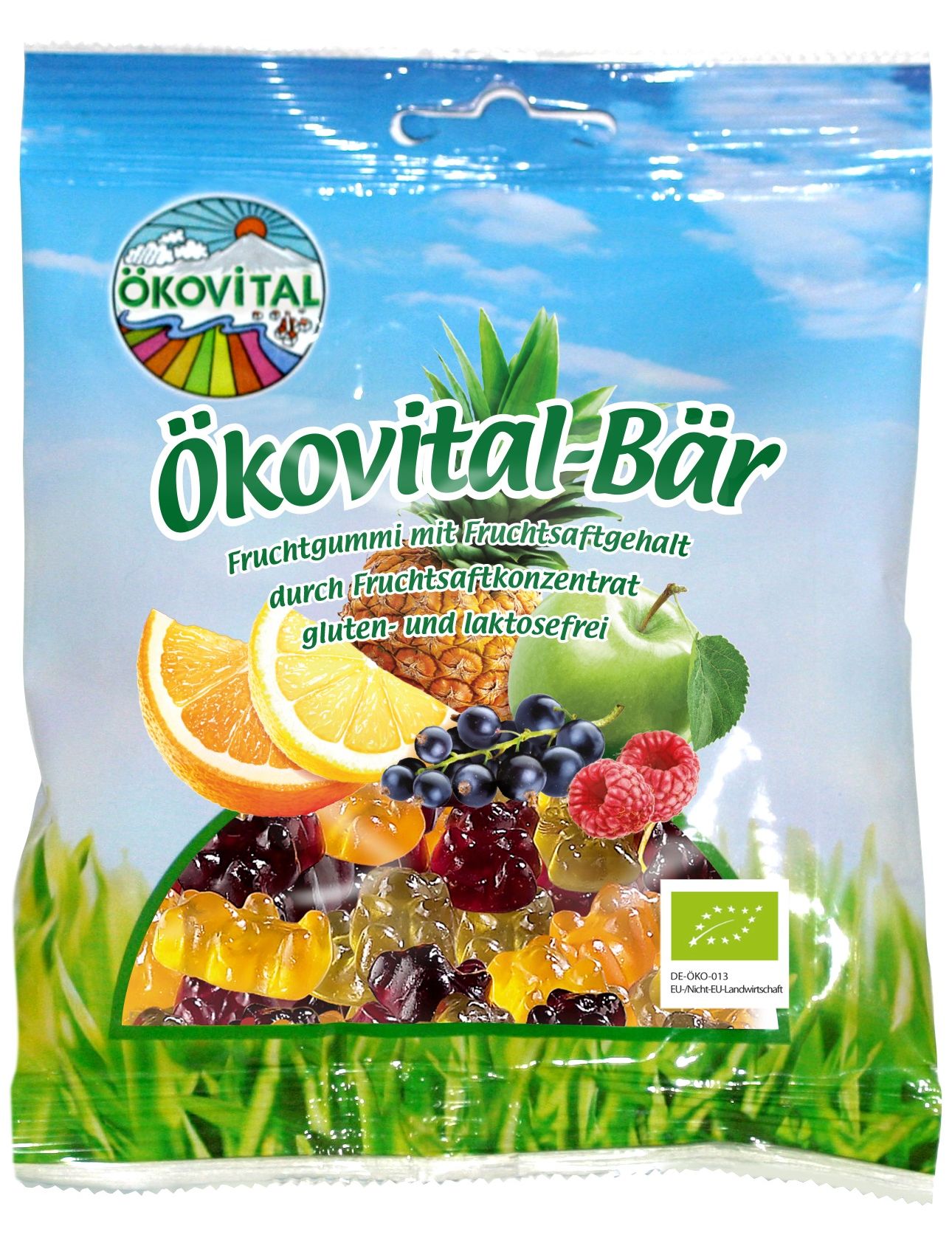 Склад: глюкозний сироп*, буряковий цукор*, желатин* (тваринного походження), яблуко* 0,70%, лимон* 0,60%, апельсин* 0,56%-, ананас* 0,48%, чорна смородина* 0,41%, малина* 0,24% сік концентрат; підкислювач: лимонна кислота; барвники фруктові та рослинні екстракти: бузини*, (моркви*, гарбуза*, яблука*, спіруліни*, сафлору*); натуральний смак лимона, яблука, ананаса, апельсина, чорної смородини, малини; покривний агент: карнаубський віск*. *=З контрольованого органічного землеробства (99,73%).