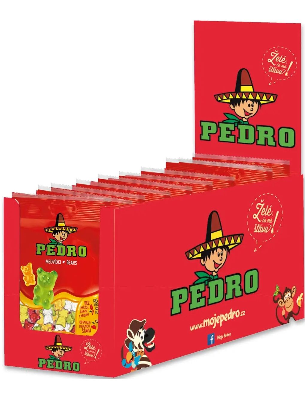 Склад: сироп глюкози, цукор, желатин, вода, сік виноградний з концентрату 5%, регулятор кислотності (лимонна кислота), рослинні концентрати (сафлору, чорної моркви, бузини), спіруліна концентрат, ароматизатори, глазуруюча оболонка (олія кокосова, глазуруючий агент (карнаубський віск)).