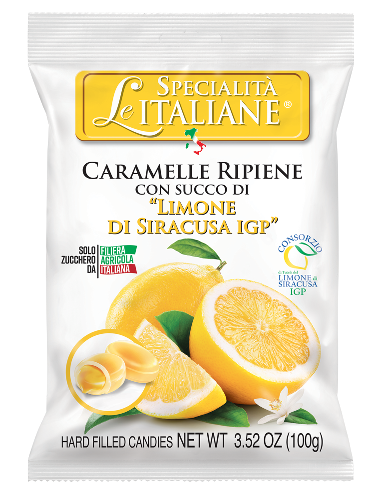 Ніжна, смачна цукерка, наповнена соком і ефірною олією цінного сіракузького лимона ЗГУ. Без барвників. Без ароматизаторів.