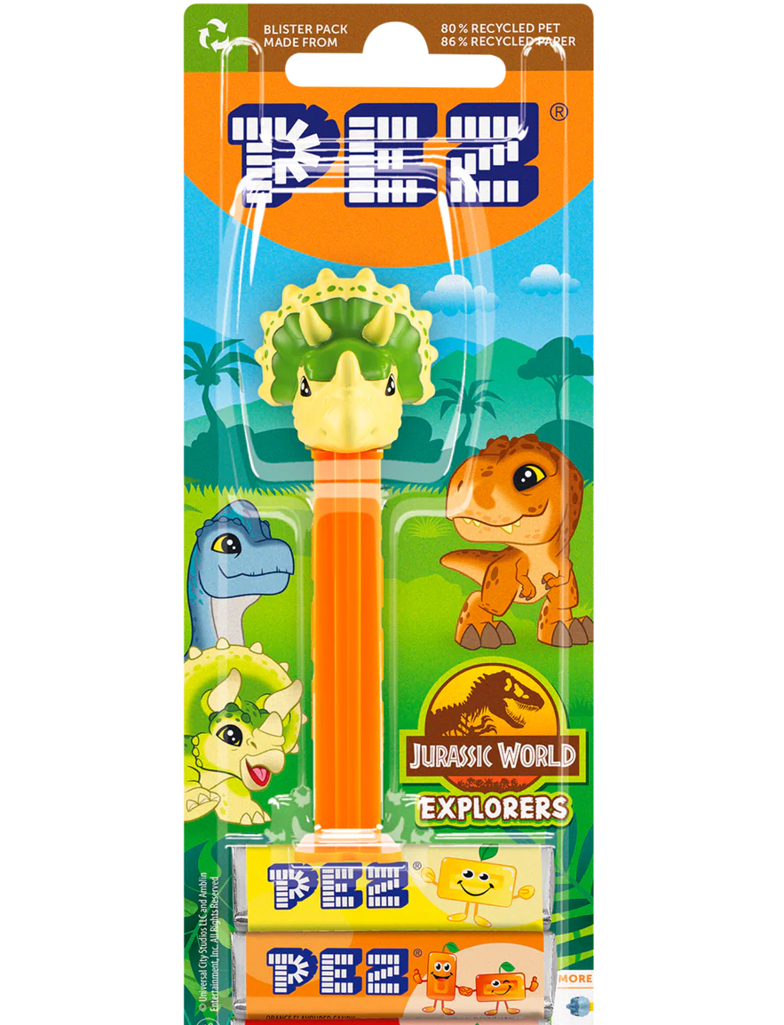 Pez Світ Юрського Періоду Іграшка-диспенсер Triceratops + Фруктові цукерки 2шт*8,5 г