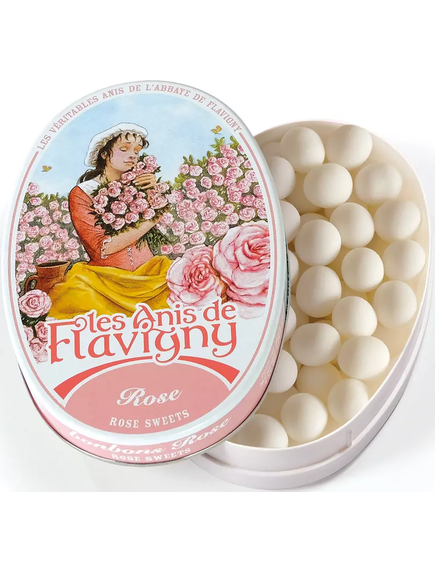 Склад: цукор, натуральний аромат троянди з іншими натуральними ароматами, насіння зеленого анісу (0,2%) в серці цукерки, екстракт троянди.