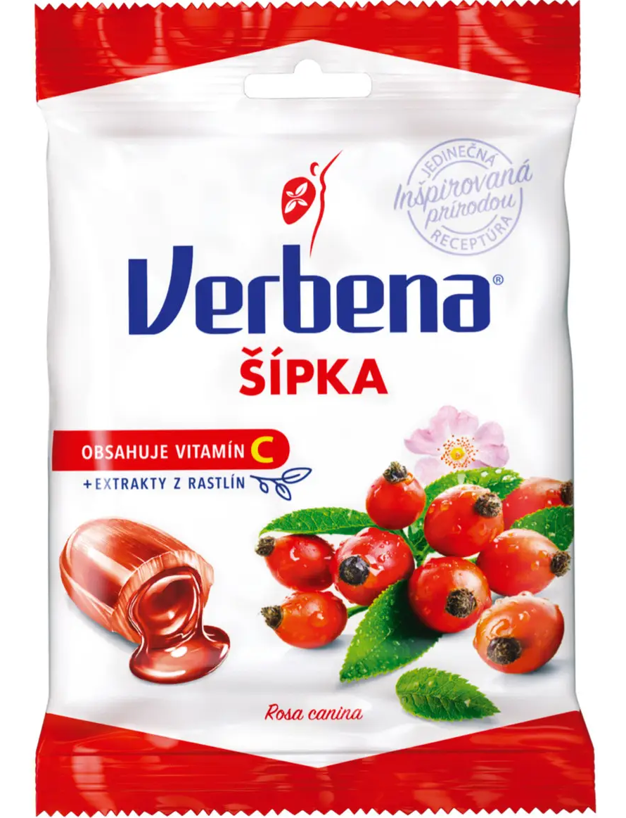 Освіжаючий смак шипшини, який ідеально поєднується з додаванням вітаміну С.Цукерки ВЕРБЕНА з начинкою з шипшини, 60 г.