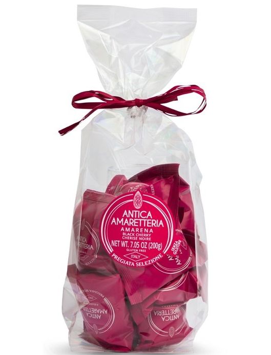 Склад: цукор, ядра кісточок абрикосу (мін. 20%), мигдаль (мін. 20%), яєчний білок, ліофілізована чорна черешня (мін. 2,5%).