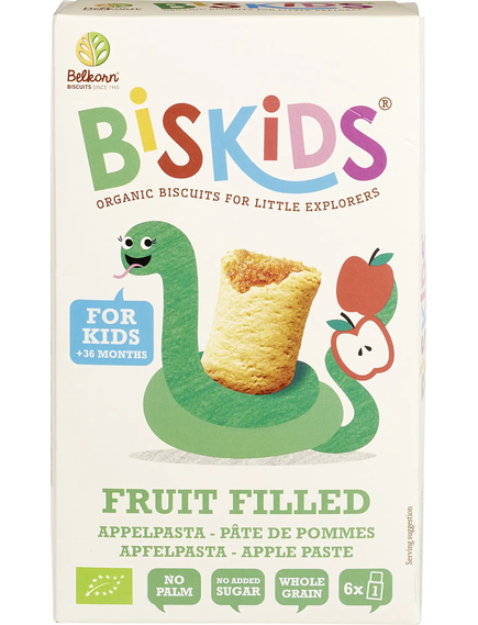 Це печиво, виготовлене з цільнозернового борошна спельти з яблучною начинкою, ідеально підходить як здоровий перекус. Його можна розтирати з фруктами або молоком. Він не містить доданого цукру та пальмової олії.