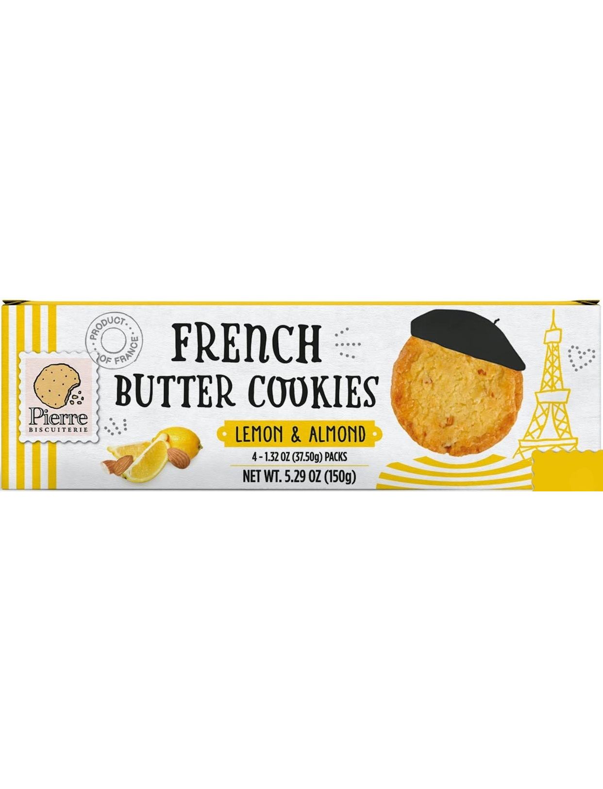 Склад: пшеничне борошно, цукор, вершкове масло 23% (молоко), шматочки лимону 5% (концентроване яблучне пюре та сік, концентрований лимонний сік, гелеутворювач: пектини, натуральний ароматизатор лимона), вершки 5% (молоко), мигдаль 1,5%, порошок яєчного жовтка, натуральний ароматизатор лимону, інші натуральні ароматизатори, морська сіль, сухе знежирене молоко, яйця.