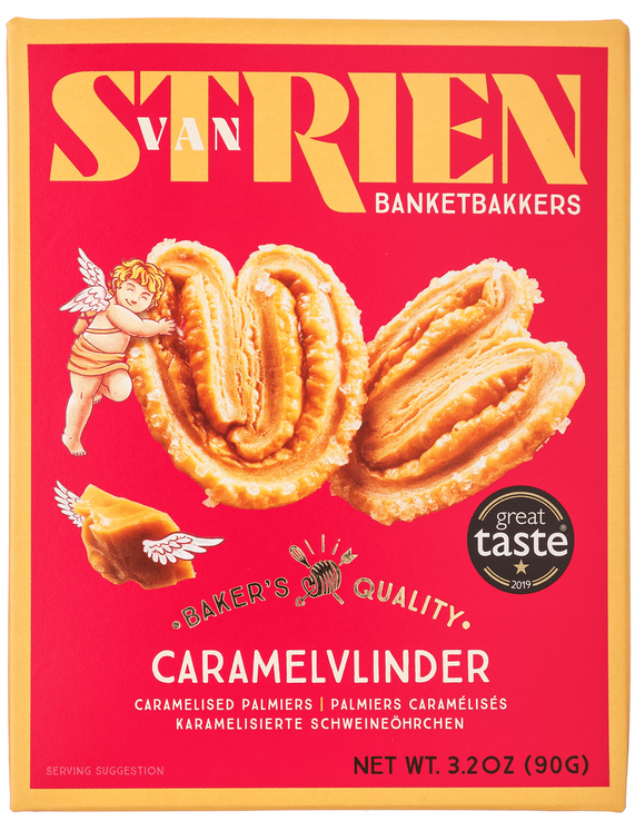 Хрумке печиво з листкового тіста ручної роботи, складене навколо ірискової серцевини та красиво прикрашене цукровим обідком.
