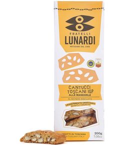 Склад: борошно пшеничне м'яке, цукор, мигдаль 25%, яйця, вершкове масло, мед, розпушувачі (Е450, Е500), натуральні ароматизатори, сіль. Може містити сліди сої, гірчиці, арахісу та лісових горіхів. Кантучіні — типове для тосканської традиції сухе мигдальне печиво, яке отримують шляхом...