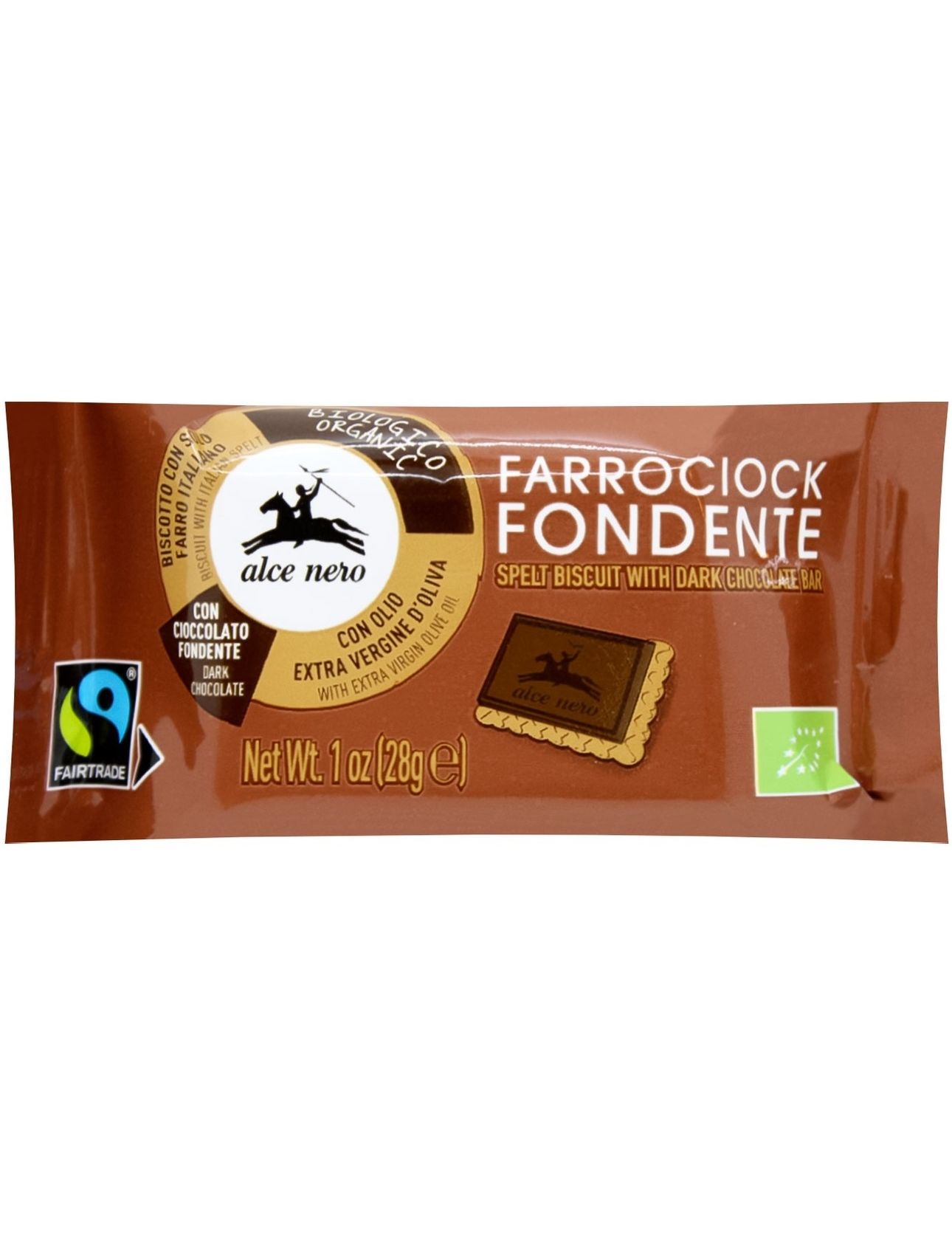 Органічне печиво зі спельтою, покрите плиткою темного шоколаду Alce Nero, виробляється з використанням італійської спельти та органічної оливкової олії першого віджиму. Використовуване какао отримують із какао-бобів, які походять з органічного вирощування, в якому пропагуються принципи якості, здоров’я та стійкості.