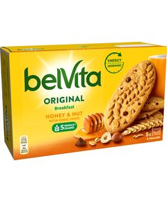 Склад: злаки 61.5% [борошно пшеничне 41.4%, злаки цілозернові 20.1% (пластівці вівсяні 12.3%, борошно пшеничне цілозернове, 3.2%, борошно з ячменю цілозернове 2.6%, борошно з полби цілозернове (пшениця 1%, борошно житнє цілозернове 1%)], цукор, олія ріпакова, шматочки шоколаду 3% [(цукор, какао терте, жир рослинний (еквівалент олії какао), декстроза, какао-олія, емульгатор (соєвий лецитин)], фундук подрібнений 2.5%, мед 2%, мінерали (карбонат кальцію, карбонат магнію, залізо), розпушувачі (гідрокарбонат натрію, гідрокарбонат амонію), сіль кухонна, регулятор кислотності (лимонна кислота), емульгатор (соєвий лецитин), ароматизатори.