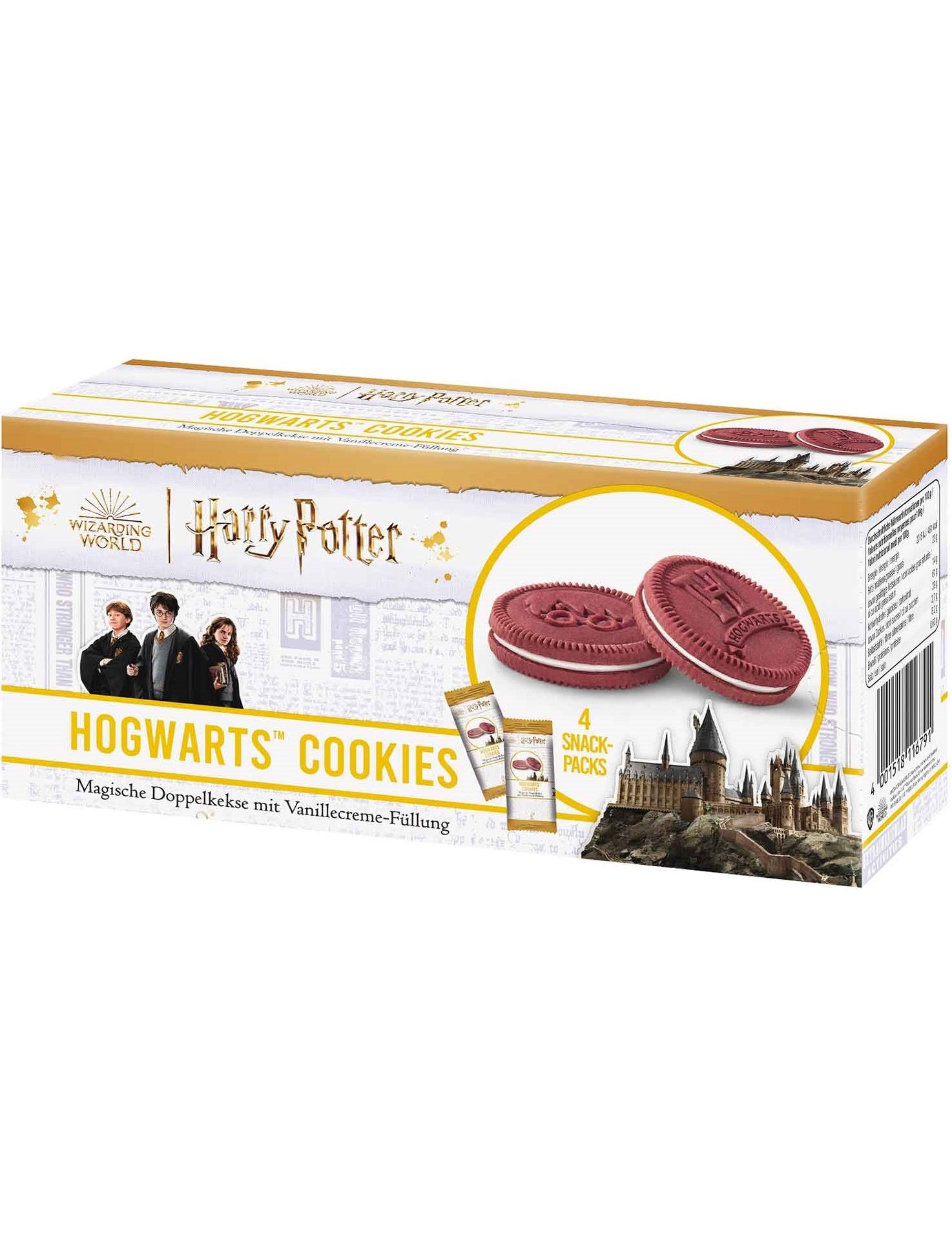Тепер це буде чарівно! Смачне печиво «Гаррі Поттер Хогвартс» приносить задоволення як маглам, так і поттерхедам. У захоплюючому образі Гаррі Поттера вони створюють атмосферне задоволення від перекусів. Хрустке какао-печиво наповнене ніжним ванільним кремом і обіцяє непереборні моменти насолоди.