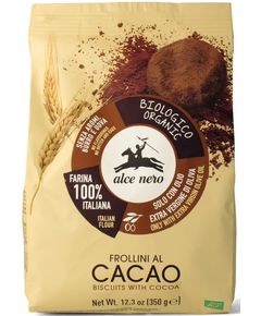 Органічне печиво Alce Nero з какао виготовляється з використанням оливкової олії першого віджиму і не містить яєць, ароматизаторів і тваринних жирів. Борошно виготовляється виключно з органічної пшениці, вирощеної в Італії. Цей особливий склад робить їх смачними та ідеальними для сніданку чи смачної закуски. Склад: пшеничне борошно (56%)*, тростинний цукор*, оливкова олія першого віджиму* (15%), какао-порошок* (5,6%), пшеничний крохмаль*, розпушувачі (карбонати амонію, карбонати натрію). *Органічний інгредієнт.
