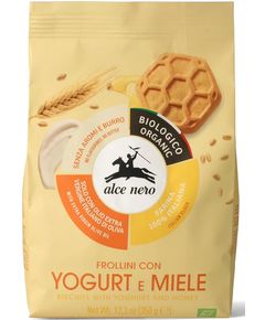 Печиво Alce Nero з йогуртом і медом виготовляється з використанням оливкової олії першого віджиму і не містить яєць, ароматизаторів і тваринних жирів. Борошно виготовляється виключно з органічної пшениці, вирощеної в Італії. Печиво Alce Nero з йогуртом і медом виготовлене з використанням йогурту «Сінне молоко TSG» і ідеально підходить для сніданку або як смачний перекус. Спробуйте їх, подавши до одного з наших чаїв.