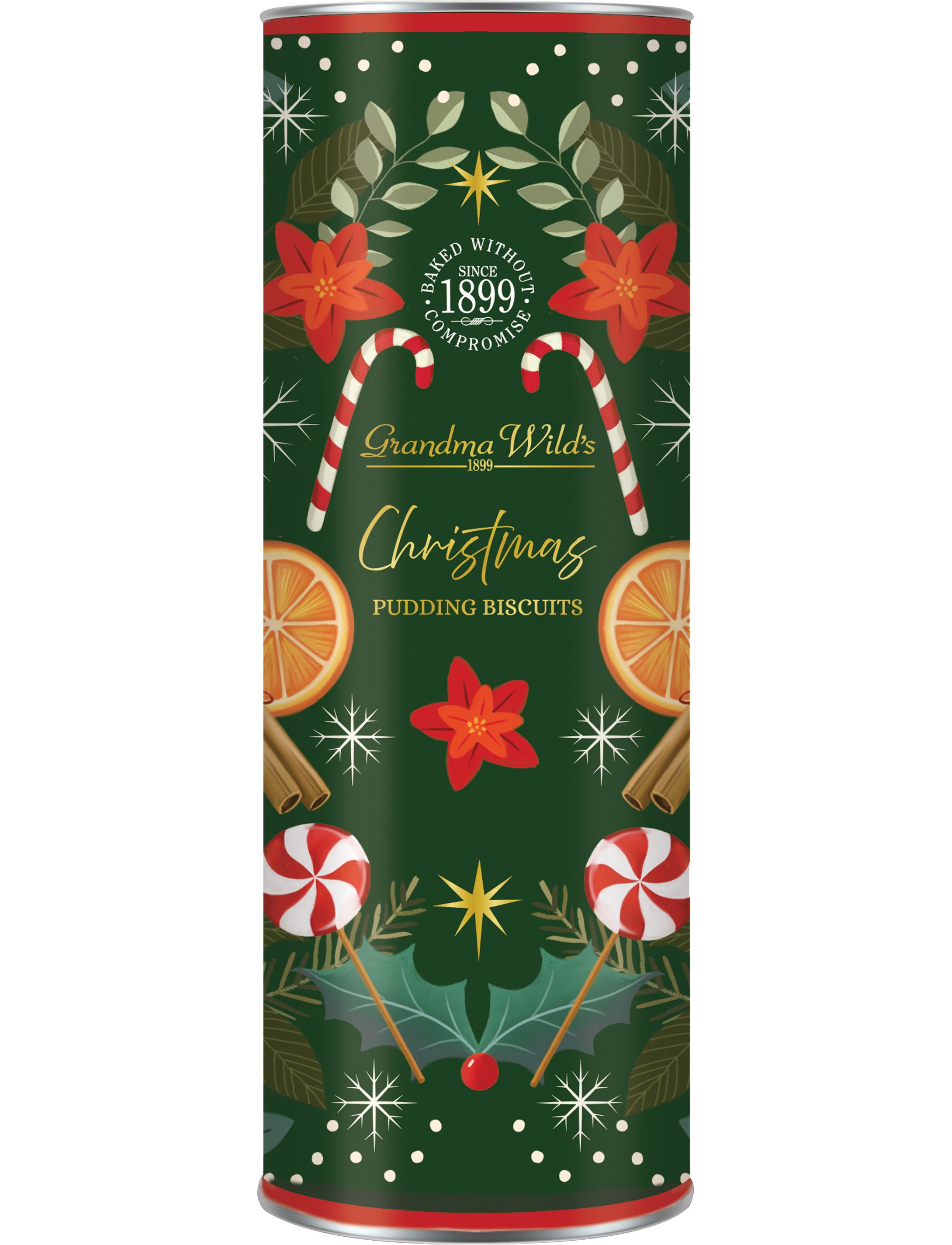 Ця святкова туба прикрашена чарівними святковими мотивами, що навіюють теплоту та радість сезону. Усередині ви відкриєте для себе чудові різдвяні пудингові печиво – чудову варіацію класичних ласощів. Це печиво насичене, пряне та ідеально випечене, втілюючи суть традиційного різдвяного пудингу в кожному шматочку.