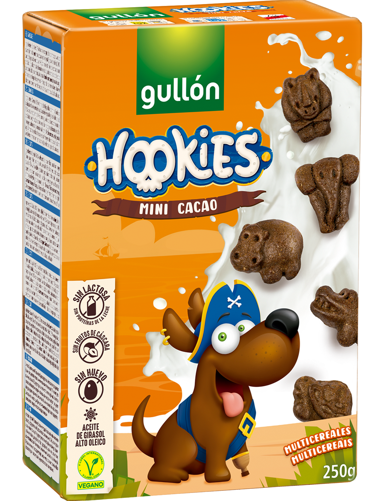Дитяче печиво Hookies Mini Choco багатозернове, що робить його джерелом клітковини. Вони виготовлені з високоолеїнової соняшникової олії. Без лактози і молочних білків, без горіхів і без яєць.