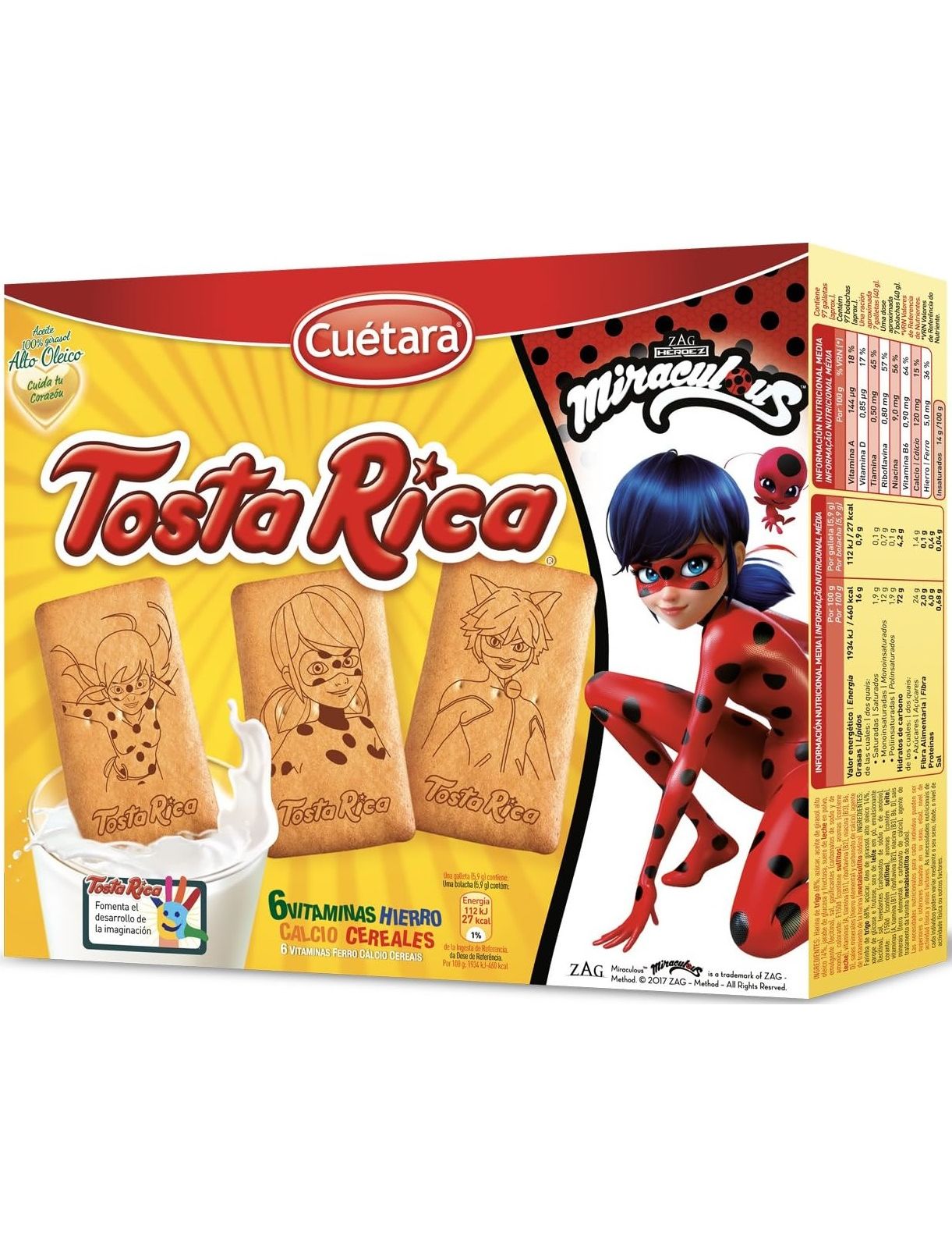 Склад: пшеничне борошно (68%), цукор, високоолеїнова соняшникова олія (14%), суха молочна сироватка, сироп глюкози та фруктози, емульгатор (лецитин), сіль, розпушувачі (карбонати амонію, карбонати натрію), барвник: E150d (містить СУЛЬФІТИ) .), ароматизатори (містить МОЛОКО), вітаміни (А, D, тіамін (В1), рибофлавін (В2), ніацин (В3), В6), мінеральні солі (елементарне залізо та карбонат кальцію), кондиціонуючий засіб для обробки борошна ( МЕТАБІСУЛЬФІТ натрію) .