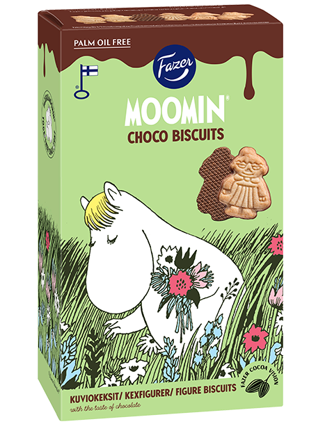 Смачне шоколадне печиво з мумі-тролями – це ласощі для всієї родини. Це ніжне шоколадне печиво фінського виробництва із зображенням улюблених персонажів мумі-тролів. Веселе шоколадне печиво з мумі-тролями – це чудовий подарунок, частування на день народження або перекус. У нашому постачанні какао ми дотримуємося бачення какао Fazer.