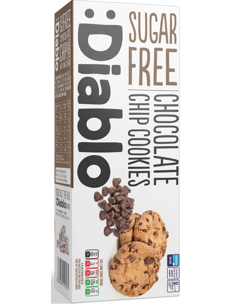 Склад: пшеничне борошно, шоколадні дропи без цукру 20% (підсолоджувач: мальтит, терте какао, емульгатор: лецитин (із сої), знежирений какао-порошок, натуральний ароматизатор ванілі), рослинний жир (фрукти пальми), підсолоджувач: мальтит, пастеризоване яйце маса, емульгатор- лецитин (із сої), розпушувачі: карбонат натрію, карбонат амонію; сіль, ароматизатори. Містить глютен, яйця, сою. Може містити молоко, горіхи, арахіс і кунжут. Для алергенів дивіться інгредієнт, виділений жирним шрифтом. Надмірне споживання може мати проносний ефект. Цей продукт не має доданого цукру, але містить природні цукру. Продукт містить підсолоджувач (мальтит).
